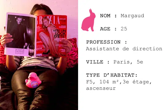 C’est un petit îlot de couleurs et de fantaisies dans un beau cinq pièces aux tons blancs, baigné de douceur et de diverses sources de lumières. Un double séjour domine l’appartement où le superflus n’a guère de chance de s’installer. A l’image de la chambre de Margaud, où rien n’est de trop, elle a su gérer le même sens de l’essentiel selon sa propre interprétation, influencée par le mouvement pop-art. Là où le blanc et la transparence dominent dans l’appartement, elle joue sur les couleurs flashy dans son propre espace.