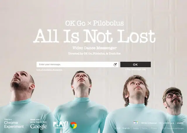 Le joli et surprenant clip d’Arcade Fire réalisé en html 5 « The wilderness Downtown » en 2010 (Remember, vous deviez saisir votre adresse postale…) a généré des vocations. D’autres aficionados expérimentent ce nouveau langage au travers d’un clip musical…