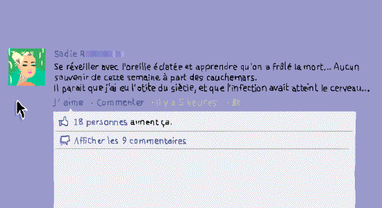 Mais sans conteste, l’utilisation la plus innovante du gif animé comme ce fut le cas pour les photos de Jaimie Beck est le travail de l’illustrateur Stephen Vuillemin avec la BD animée. Non seulement, il apporte une nouvelle dimension à la narration bédéesque en traitant de manière originale la BD numérique et contribue aussi à apporter sa pierre à ce monument du web qu’est le gif animé.