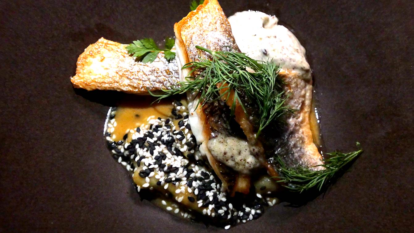 En entrée, nous avons été charmés par « Comme un poireau vinaigrette ». C’est toujours enthousiasmant de se laisser surprendre par un ingrédient simple et commun comme le poireau, qui peut être étonnamment sublimé par une cuisine de talent. Le contraste entre le fondant du poireau et le croquant des éclat d’amandes est très séduisant.